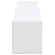This sleek TV stand brings a crisp, modern look to the living room. Its 71-inch width can accommodate up to a 75-inch screen, creating an ideal media console for contemporary spaces. Crafted from engineered wood with a white high gloss lacquer finish, it offers a refined entertainment center aesthetic. The low-profile frame and two spacious drawers blend minimalism with function, making this a versatile entertainment unit or TV shelf. Key Features: • Elegant TV stand enhancing modern décor styles • White high gloss lacquer finish for polished appeal • Two roomy drawers offer concealed storage for media items • Low-profile frame ensures a sleek, uncluttered look • Engineered wood construction for dependable durability • Suitable for up to 75-inch televisions, perfect media cabinet setup