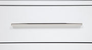 This bedroom set combines soft curvature and linear polish in a clean modern silhouette. Each piece features elongated brushed nickel pulls and subtle vertical tube accents that frame smooth white surfaces. The bed softens the look with a light grey upholstered headboard and footboard, adding contrast and comfort. Built from solid rubberwood, engineered wood, and laminate veneer, this set balances elegance with practical everyday function. Key Features: • Bedroom set features rounded silhouettes and clean lines for modern storage and sleep • White finish pairs with brushed nickel pulls and vertical metal tube detailing • Bed includes light grey fabric panels with soft foam for cushioned comfort • Felt-lined top drawers offer tinted interiors and integrated charging access • Drawers glide on 45mm metal runners with dovetail joints for smooth daily use • Built from solid Asian hardwood, engineered wood, and a smooth laminate veneer