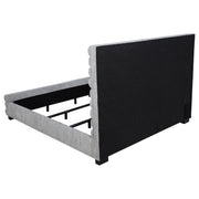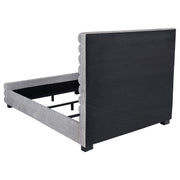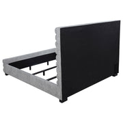 Elevate your bedroom with this modern bed featuring a striking 58-inch tall channel-tufted headboard and matching footboard. Upholstered in soft grey boucle fabric, its textured design creates a cozy and inviting ambiance. Built with durable birch, plywood, and engineered wood, this bed ensures long-lasting support. Foam padding enhances comfort, while black-finished legs provide stability and subtle contrast, making it a perfect statement piece for contemporary spaces. Key Features: • Queen bed features a 58-inch tall channel-tufted headboard for a bold statement • Upholstered in luxurious grey boucle fabric with a textured finish • Constructed from birch, plywood, and engineered wood for durability • Foam padding delivers added comfort and support • Sturdy black-finished legs ensure lasting stability • Modern design ideal for elevating any bedroom aesthetic