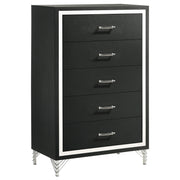 Effortlessly blending inviting softness and timeless sophistication, this four-piece modern bedroom set creates a rich but inviting ambiance. It centers on a stylish upholstered bed that pairs grey velvet upholstery with a fluted look, creating impressive texture and dimensionality. Its on-trend silhouette encourages an open, airy feeling, complete with understated rails and footboard. The set includes a two-drawer nightstand and six-drawer dresser and mirror combination, creating a stylish set that brims with elegance. The cases features a bold black finish, while each piece is trimmed in chrome, offering gleaming warmth and sophistication. Key Features: • A bedroom set accented with chic touches of glamour and sophisticated modern flair • Wingback bed silhouette creates a timeless profile and elegant bedroom centerpiece • Soft grey velvet upholstery adds inviting texture and a sense of refined depth • Chrome trim accents the headboard and case pieces, complemented by decorative legs • Dresser and nightstand provide ample storage with a bright white gleaming finish • Drawers feature English dovetail joinery for durability and long-lasting quality