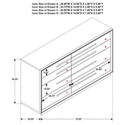 Geometric details from this queen four-piece bedroom set provide an interesting visual. Full of depth and warmth, the high upholstered headboard features a smoked peppercorn finish. This set is complete with a nine-drawer dresser and two-dresser nightstand and included shelf. Retro inspired details welcome structure and personality to any motif. Perfect above the dresser, the included mirror is clean and elongated. Key Features: • Bedroom set with panel bed, coordinated storage, and upholstered details • Smoked peppercorn wood finish delivers rich, modern tone • Bed features velvet-upholstered panels with grid tufting • Streamlined design blends modern styling with tailored accents • Crafted from poplar, birch veneer, engineered wood, and plywood • Gold-finish hardware adds contrast to dark wood and fabric surfaces