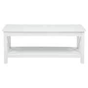 Blending clean lines with classic charm, this occasional table set offers timeless appeal with practical purpose. The lift-top coffee table features hidden storage and a rising surface for flexible use, while the matching end table provides open shelving and farmhouse-inspired X-frame sides. Finished in bright white and crafted from pine and engineered wood, this living room set brings fresh energy and functional design to everyday moments. Key Features: • Occasional table set with lift-top coffee table and matching X-frame side table • White finish provides a clean, versatile look for farmhouse or coastal themes • Lift-top coffee table reveals hidden storage for remotes, books, or blankets • End table includes an open shelf and square top for added display space • Crafted from solid pine and engineered wood for everyday durability • Perfect for casual living spaces seeking charm, utility, and coordinated design