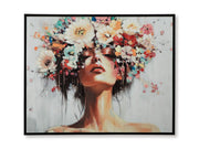 You can never go wrong with florals. This enchanting wall art captures nature's abundant beauty, featuring a woman's headdress overflowing with a stunning variety of flowers. It's sure to brighten your mood each time you see it.