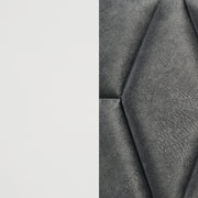 Bring geometric detail to your bedroom with the charming hexagon motif featured on this modern upholstered bed. Offering a contemporary look and feel, it creates a stylish focal point with its rich contrast of color and texture. The padded headboard offers excellent comfort and dark gray fabric upholstery. A streamlined wood frame adds a bright white finish to the rectangular head and footboards, creating an open, airy look. This stylish bed is complete with black accents in the base of the footboard and requires a foundation for use. Key Features: • A modern bed creates a stylish focal point with an upholstered headboard and sleek silhouette • Elongated hexagonal tufting creates a bold look in a padded headboard with dark gray fabric • White finish is crisp and bright, offering modern appeal and an open, airy feel • Black accents create a sense of depth and contrast in a contemporary bedroom • A foundation is required for use with this modern bed, which has a 600-pound weight limit
