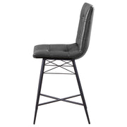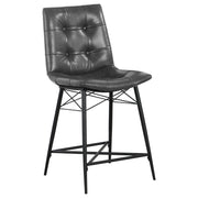Cool and cozy, this counter height stool is the ultimate dining room upgrade. The padded seat is wrapped in smooth leatherette for an inviting look and feel. Button tufting adds a subtle, decorative touch. A sleek, metal base gives it a modern look while providing plenty of support. Crafted for comfort and lasting durability, this contemporary stool is a smart and stylish choice for the modern home. Key Features: • Cool and cozy counter height stool with padded seat wrapped in smooth leatherette and button tufting for a subtle, decorative touch • Sleek metal base provides modern look and lasting durability • Ideal for modern home, providing comfort and support • Inviting look and feel with contemporary design • Ultimate dining room upgrade for lasting style